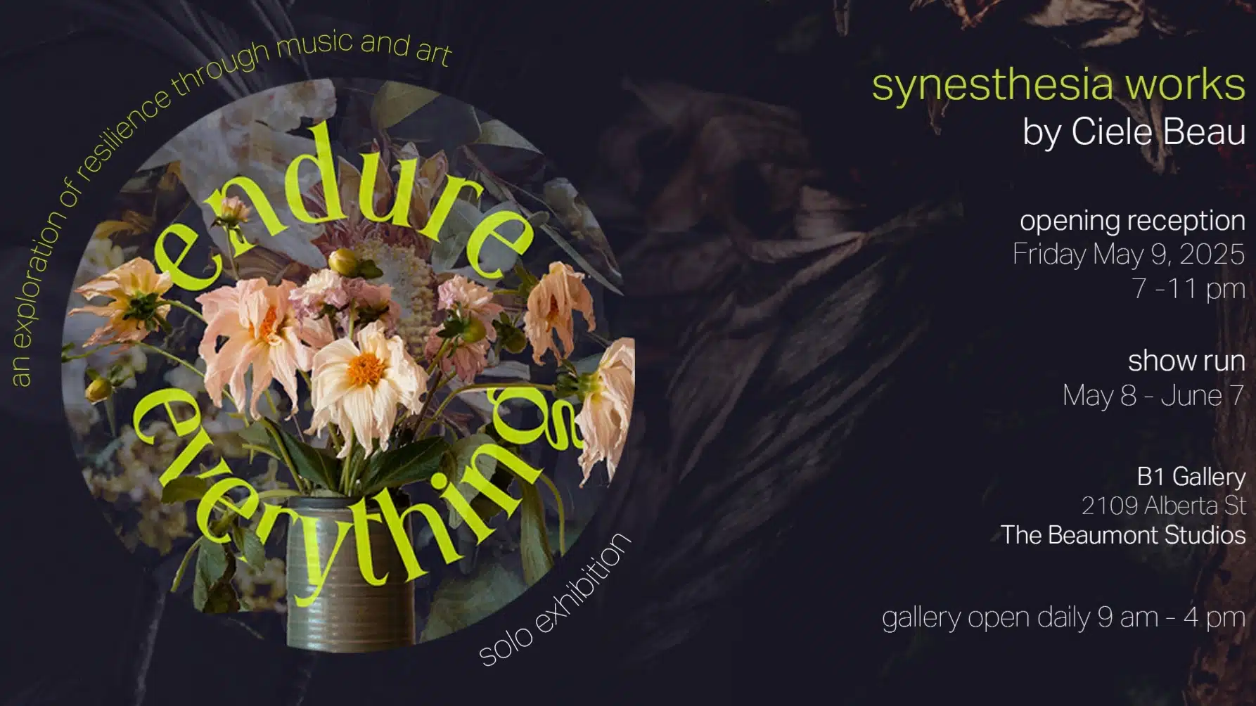 Endure Everything by Ciele Beau is an immersive exploration of resilience through art and music. The exhibition captures the emotional turmoil of life’s breakdowns—those moments when everything falls apart, and you feel lost and searching. Through her paintings, Beau delves into the painful journey of enduring hardship, while ultimately finding hope on the other side. Endure Everything highlights the strength in vulnerability and the power of persistence.