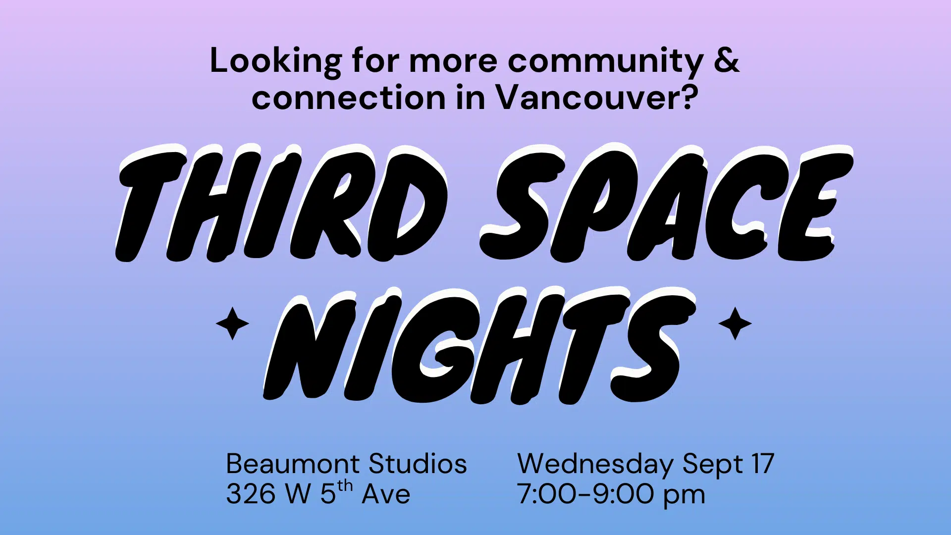 Looking to find more community and connection in Vancouver? Third Space Nights are monthly gatherings to foster new connections in a diverse and intergenerational group, have meaningful conversations that explore ways to build more community in the city, and just hangout with good people who are open to connection – oh, and eat free cake.