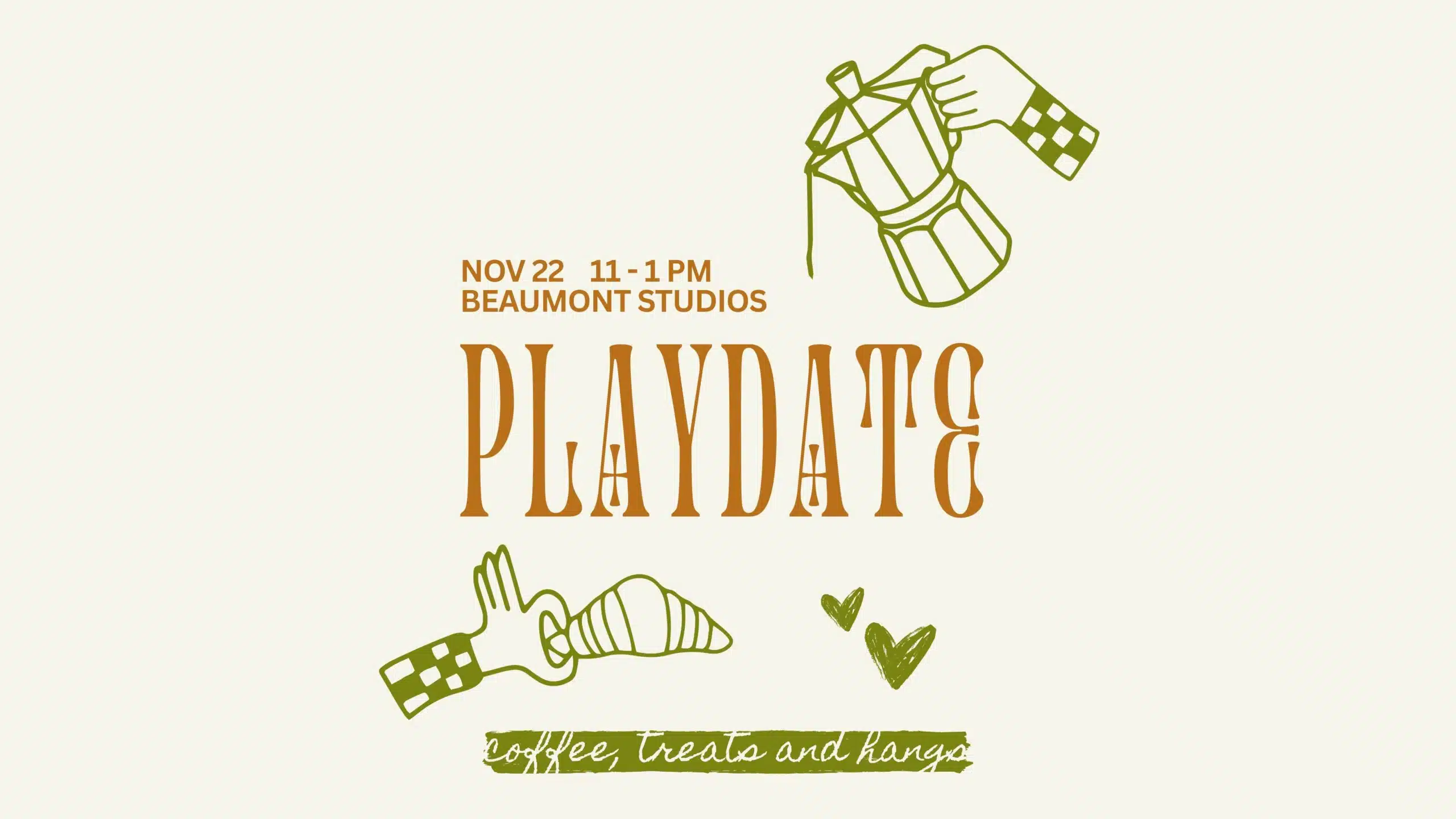 Ready for The Playdate volume 2 – cozy edition? Last summer, Claire, Kiel and friends hosted a casual cafe experience where grown ups got to have a cafe experience (think treats, pourover specialty coffee from local roasters and other fun non cafe drinks) while the kiddos had space to run around and play.